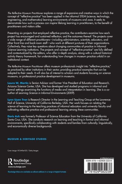 The Reflective Museum Practitioner explores a range of expansive and creative ways in which the concept of "reflective practice" has been applied in the informal STEM (science, technology, engineering, and mathematics) learning environments of museums and zoos. It seeks to demonstrate how such a process can inspire lifelong learning in practitioners, to the benefit of practitioners and visitors alike. Presenting six projects that employed reflective practice, the contributors examine how each project has encouraged and sustained reflection, and the outcomes thereof. The projects cover a wide range of different practitioners-including administrators, scientists, educators, and other front-line and back-room staff-who work at different junctures of their organizations. Collectively, they raise key questions about changing communities of practice in Informal Science Learning institutions. The projects and concept of "reflective practice" are fully defined and contextualized by the editors, who offer in-depth analysis, along with a cultural-historical activity theory framework, for understanding how changes in museum practice unfold in an institutional context. The Reflective Museum Practitioner offers museum professionals insight into "reflective practice," as practiced by other institutions in their sector, providing practical examples that can be adapted to their needs. It will also be of interest to scholars and students focusing on science museums, or professional practice development in museums.