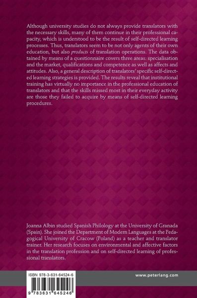 Although university studies do not always provide translators with the necessary skills, many of them continue in their professional capacity, which is understood to be the result of self-directed learning processes. Thus, translators seem to be not only agents of their own education, but also products of translation operations. The data obtained by means of a questionnaire covers three areas: specialisation and the market, qualifications and competence as well as affects and attitudes. Also, a general description of translators' specific self-directed learning strategies is provided. The results reveal that institutional training has virtually no importance in the professional education of translators and that the skills missed most in their everyday activity are those they failed to acquire by means of self-directed learning procedures.