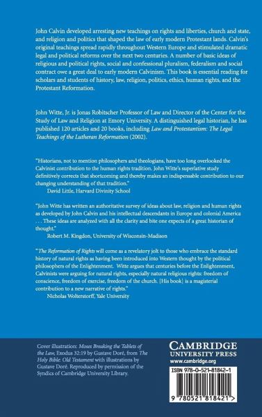 John Calvin developed arresting new teachings on rights and liberties, church and state, and religion and politics that shaped the law of Protestant lands. Calvin's original teachings were periodically challenged by major crises - the French Wars of Religion, Dutch Revolt, the English Civil War, American colonization, and American Revolution. In each such crisis moment, a major Calvinist figure emerged - Theodore Beza, Johannes Althusius, John Milton, John Winthrop, John Adams, and others - who modernized Calvin's teachings and translated them into dramatic new legal and political reforms. This rendered early modern Calvinism one of the driving engines of Western constitutionalism. A number of basic Western laws on religious and political rights, social and confessional pluralism, federalism and constitutionalism, and more owe a great deal to this religious movement. This book is essential reading for scholars and students of history, law, religion, politics, ethics, human rights, and the Protestant Reformation.