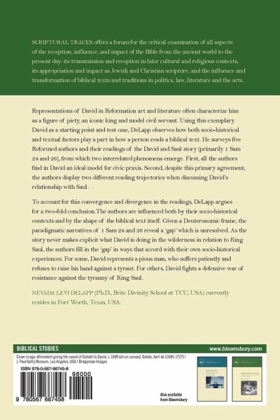 This study centers on the question: how do particular readers read a biblical passage? What factors govern each reading? DeLapp here attempts to set up a test case for observing how both socio-historical and textual factors play a part in how a person reads a biblical text. Using a reception-historical methodology, he surveys five Reformed authors and their readings of the David and Saul story (primarily 1 Sam 24 and 26). From this survey two interrelated phenomena emerge. First, all the authors find in David an ideal model for civic praxis-a "Davidic social imaginary" (Charles Taylor). Second, despite this primary agreement, the authors display two different reading trajectories when discussing David's relationship with Saul. Some read the story as showing a persecuted exile, who refuses to offer active resistance against a tyrannical monarch. Others read the story as exemplifying active defensive resistance against a tyrant. To account for this convergence and divergence in the readings, DeLapp argues for a two-fold conclusion. The authors are influenced both by their socio-historical contexts and by the shape of the biblical text itself. Given a Deuteronomic frame conducive to the social imaginary, the paradigmatic narratives of 1 Sam 24 and 26 offer a narrative gap never resolved. The story never makes explicit to the reader what David is doing in the wilderness in relation to King Saul. As a result, the authors fill in the "gap" in ways that accord with their own socio-historical experiences.