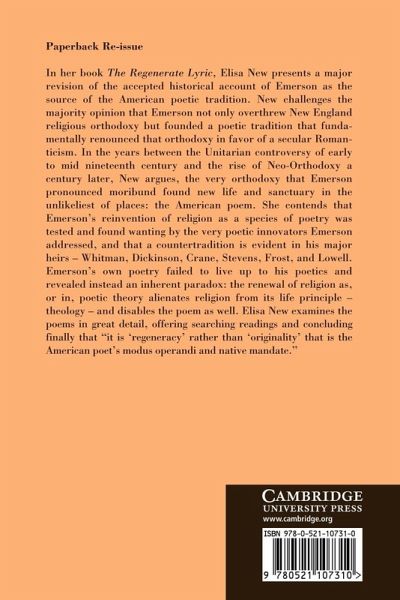 Elisa New presents a major revision of the accepted account of Emerson as the source of the American poetic tradition.