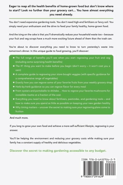 Eager to reap all the health benefits of home-grown food but don't know where to start? Look no further than your grocery cart... You have almost everything you need already. Since the events of 2020, more and more people have turned to growing their own food... but for every person who enthusiastically stocks up on potting compost, fertilizer, seeds, and equipment, there's another who looks at all the shelves at the gardening store and hasn't a clue where to begin. Perhaps you're one of them. Do you love the idea of growing your own vegetables? The health benefits? The more self-sufficient lifestyle? For many people, the thought is enticing... but when it comes down to it, learning to garden from scratch is just too overwhelming. But if that story's familiar to you, take heart... There's another way to inch your way closer to self-sufficiency... And you already buy everything you need every week. That's right - your weekly grocery shop contains all the vegetables your family likes to eat... and that means, you have almost everything you need to get started growing your own food. You don't need expensive gardening tools. You don't need high-end fertilizers or fancy soil. You simply need your enthusiasm and the drive to feed your family healthy, home-grown food. And the icing on the cake is that you'll dramatically reduce your household waste too - because your fruit and veg scraps have got a much more exciting future ahead of them than the trash can. You're about to discover everything you need to know to turn yesterday's waste into tomorrow's dinner. In this unique guide to food growing, you'll discover:The full range of benefits you'll see when you start regrowing your fruit and veg (including some surprising health benefits) The #1 thing you want to make before you begin (don't worry - it won't cost you a cent) A complete guide to regrowing your store-bought veggies (with specific guidance for a comprehensive range of vegetables) Exactly how you can regrow some of your favorite fruits from your weekly grocery shop Herb-by-herb guidance so you can regrow flavor for every meal From oysters and portobello to shiitake... How to regrow your favorite mushrooms for incredible risotto at a fraction of the cost Everything you need to know about fertilizers, pesticides, and gardening tools - and how to make sure you spend as little as possible on keeping your new garden healthy Why timing matters - uncover the secret to making sure your regrowing plans come to fruition And much more. If you long to grow your own food and achieve a more self-sufficient lifestyle, regrowing is your answer. You'll be helping the environment and reducing your grocery costs while making sure your family has a constant supply of healthy and delicious vegetables. What's holding you back?