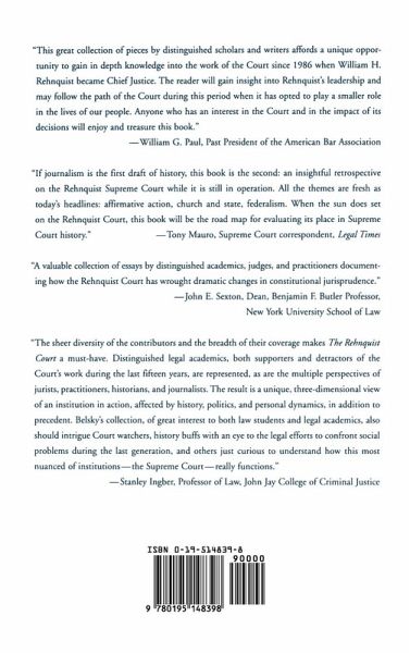 In 1986, the Supreme Court's leading conservative William H. Rehnquist, labelled by Newsweek as 'The Court's Mr. Right' was made Chief Justice. Almost immediately, legal scholars, practitioners, and pundits began questioning what his influence would be, and would he remake our constitutional corpus in his own image? Would the centre hold, or fold? This collected volume, which follows in the series edited by the late Bernard Schwartz, includes The Warren Court and The Burger Court, and contains the work of a varied body of scholars and practitioners. It includes an overview of the Rehnquist Court's influence to date, a detailed examination of the seminal issues confronted by the Court, and places the Court in broad historical perspective. Some of the issues examined in detail are First Amendment rights and cyberspace, criminal justice reform, the Court's pattern of constitutional interpretation, the international impact of the Rehnquist Court, and The Supreme Court's increasing interaction with state constitutional law.