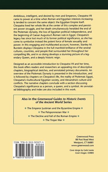 Ambitious, intelligent, and desired by men and emperors, Cleopatra VII came to power at a time when Roman and Egyptian interests increasingly tended to concern the same object: the Egyptian Empire itself. Cleopatra lived her whole life at the center of this complex and persistent power struggle, and her death simultaneously heralded the end of the Ptolemaic dynasty, the loss of Egyptian political independence, and the beginning of Caesar Augustus's Roman rule in Egypt. Cleopatra's legacy has since lost much of its former political significance, as she has come to symbolize instead the potent force of female sexuality and power. In this engaging and multifaceted account, however, Stanley M. Burstein displays Cleopatra in the full manifold brilliance of the several cultures, countries, and people that surrounded her throughout her compelling life, and in so doing develops a stunning picture of a legendary Queen, and a deeply historic reign. Designed as an accessible introduction to Cleopatra VII and her time, this book offers readers and researchers an appealing mix of descriptive chapters, biographical sketches, and annotated primary documents. An overview of the Ptolemaic Dynasty is presented in the introduction, and is followed by chapters on Cleopatra's life, the reality of Ptolemaic Egypt, Cleopatra's multicultural Egyptian society, and Alexandria's culture and conflicts. The narrative chapters conclude with a section discussing Cleopatra's significance as a person, a queen, and a symbol. An annotated bibliography and index are also included in this work.
