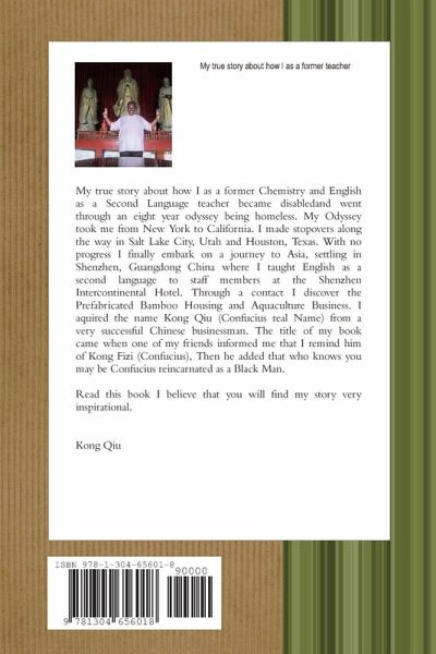 My adventures going from teaching Gifted High School Students and helping disabled people from losing their apartments due to rental arrears to ending up without access to my own place to bathe and taking care of my own toilet needs and my eight year odyssey trying to get back on my feet and how I eventually ended up up in China with very little money,not knowing one word of Chinese or even one soul in China became a Teacher of English as a Foreign Language and stumbling upon the Prefabricated Bamboo Housing Business, Permaculture, and Aquponics/Aquaculture and how I became known as Kong Qiu (Confucius) after the great ancient Chinese Philosopher.