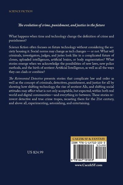 The evolution of crime, punishment, and justice in the future.What happens when time and technology change the definition of crime and punishment? Science fiction often focuses on future technology without considering the society housing it. Social norms may change as tech changes - or not. What will criminals, investigators, judges, and juries look like in a complicated future of clones, uploaded intelligences, artificial brains, or body augmentation? What stories emerge when we acknowledge the possibilities of new laws, new police methods, and the birth of sentient Artificial Intelligence, as well as all the ways they can clash or combine? The Reinvented Detective presents stories that complicate law and order as well as the concept of criminals, detectives, punishment, and justice for all by showing how shifting technology, the rise of sentient AIs, and shifting social attitudes may affect what is not only acceptable, but expected, within both real world and digital communities--and everything in-between. These stories reinvent detective and true crime tropes, recasting them for the 21st century, and above all, experimenting, astonishing, and entertaining.
