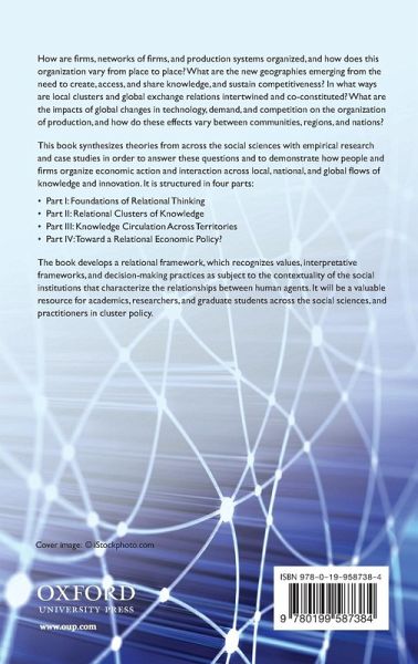 Part I: Foundations of Relational Thinking 1: Introduction 2: Relational Action in a Spatial Perspective 3: Structure, Agency, and Institutions 4: Knowledge as a Relational Resource Part II: Relational Clusters of Knowledge 5: Know-How and Industrial Clusters 6: Know-Who and Urban Service Clusters 7: Local Buzz and Global Pipelines Part III: Knowledge Circulation Across Territories 8: A Relational Theory of Firm Internationalization 9: From Permanent to Temporary Clusters 10: Global Knowledge Flows in Corporate Networks Part IV: Toward a Relational Economic Policy? 11: Consequences for Relational Policies