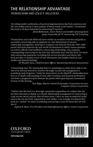 1.: The IT Outsourcing Phenomenon: Trends, Practices, Challenges 2.: Risk Mitigation and the Relationship Advantage in IT Outsourcing 3.: Global Relationship Management at Xerox Corporation 4.: Relational Dynamics at British Aerospace 5.: Alliance Management at British Petroleum Exploration 6.: Relationship Management in Selective Outsourcing at ESSO-ITNet 7.: Strategic Partnering in Public Sector IT Outsourcing 8.: Relationship Management: A Cross-Case Perspective 9.: The Relationship Advantage as Practice: Reflections Appendix 1.: Research Methodology Appendix 2.: The Research Process: Founding the Analytical Frameworks