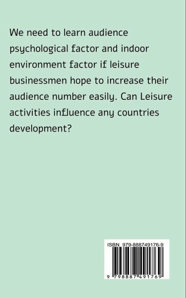 Introduction Nowadays, on movie and opera art performance lesiure market, our leisures businesses have many different kinds to let consumer individual choice, for example, movie, opera art management, football performance, swimming , bicycle competition performance etc. indoor leisure activities. How can persuade audiences to buy ticket to see any one of these indoor leisure performance? We need to learn audience psychological factor and indoor environment factor if leisure businessmen hope to increase their audience number easily. Can Leisure activities influence any countries development? What are the different unique characteristics between one developing country and one developed country ¿How to judge whether the country had been either developed or had been developing ? What factors influence the country development speed? In my this book, I shall indicate New Zealand whether is one developed country or developing country, although its farming industry , e.g. sheep cloth manufacturing, breef and pork meat food export industries had developed long time, but what weaknesses, it owns to influence its continue development easily as well as what strengths it lacks to influence New Zealand is still staying in the developing stage in possible in global leading position. What factors influence US, UK their technological development can not be continued innovated to cause worse development to compare Germany 's heavy manufacturing industry future development in possible.