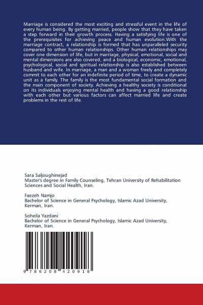 Marriage is considered the most exciting and stressful event in the life of every human being. By getting married, people show that they have taken a step forward in their growth process. Having a satisfying life is one of the prerequisites for achieving peace and human evolution.With the marriage contract, a relationship is formed that has unparalleled security compared to other human relationships. Other human relationships may cover one dimension of life, but in marriage, physical, emotional, social and mental dimensions are also covered, and a biological, economic, emotional, psychological, social and spiritual relationship is also established between husband and wife. In marriage, a man and a woman freely and completely commit to each other for an indefinite period of time, to create a dynamic unit as a family. The family is the most fundamental social formation and the main component of society. Achieving a healthy society is conditional on its individuals enjoying mental health and having a good relationship with each other but various factors can affect married life and create problems in the rest of life.