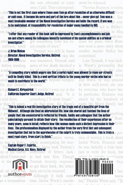 On October 5, 1980, Jacqueline Jane Wurst, Hospital Corpsman 2nd Class, United States Navy, left the Naval Hospital at the Naval Air Station in Lemoore, California to go on a four-hour break before her next shift. Her body was discovered the next day after having been brutally murdered, sexually assaulted and thrown into the water at the Kings River. The investigation went dormant for over two years, and only because of absolute determination by investigators would her killer be found and finally brought to justice in 1985. This is a true story of the tragic death of a beautiful, young, caring woman who was victimized on two separate occasions, the last costing her life. The story touches on how HM2 Wurst's life and murder affected her family, her U.S. Navy family and law enforcement investigators. The Relentless Pursuit of the Truth is an American story of one woman who was beloved by her family and valued by the military she served. The story will hold the reader spellbound, while serving as a tribute to a young woman so loved by all she came in contact with during her short life.