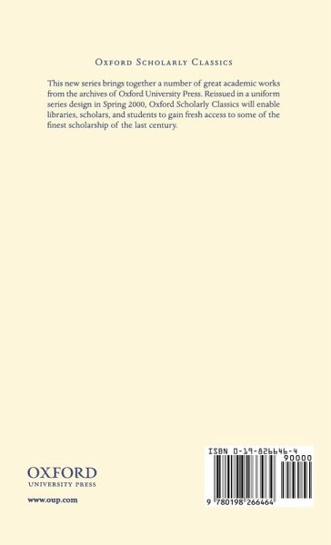Oxford Scholarly Classics is a new series that makes available again great academic works from the archives of Oxford University Press. Reissued in uniform series design, the reissues will enable libraries, scholars, and students to gain fresh access to some of the finest scholarship of the last century.