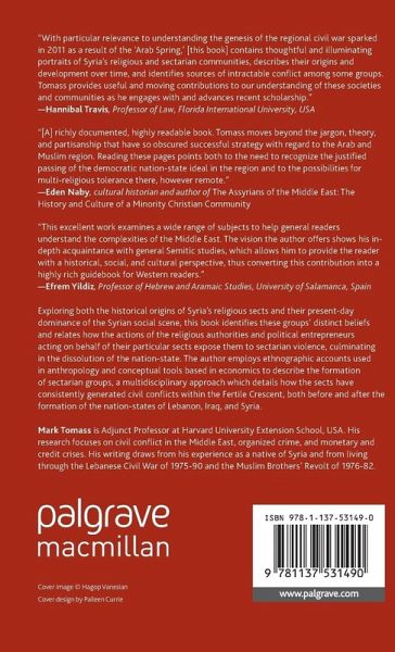 Exploring both the historical origins of Syria's religious sects and their present-day dominance of the Syrian social scene, this book identifies these groups' distinct beliefs and relates how the actions of the religious authorities and political entrepreneurs acting on behalf of their particular sects expose them to sectarian violence, culminating in the dissolution of the nation-state. The author employs ethnographic accounts used in anthropology and conceptual tools based in economics to describe the formation of sectarian groups, a multidisciplinary approach which details how the sects have consistently generated civil conflicts within the Fertile Crescent, both before and after the formation of the nation-states of Lebanon, Iraq, and Syria.