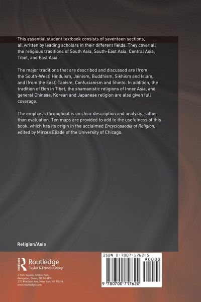 This essential student textbook consists of seventeen sections, all written by leading scholars in their different fields. They cover all the religious traditions of Southwest Asia, Southeast Asia, Central Asia, Tibet, and East Asia. The major traditions that are described and discussed are (from the Southwest) Hinduism, Jainism, Buddhism, Sikhism and Islam, and (from the East) Taoism, Confucianism and Shinto. In addition, the tradition of Bon in Tibet, the shamanistic religions of Inner Asia, and general Chinese, Korean and Japanese religion are also given full coverage. The emphasis throughout is on clear description and analysis, rather than evaluation. Ten maps are provided to add to the usefulness of this book, which has its origin in the acclaimed Encyclopedia of Religion, edited by Mircea Eliade of the University of Chicago. Alexandre Bennigsen Ecole Pratique des Hautes Etudes, College de France Fanny E. Bryan Urbana, Illinois Robert Evans Buswell, Jr. University of California at Los Angeles Cole