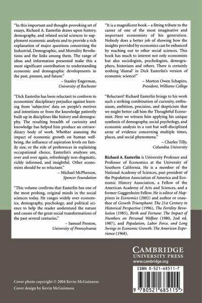 List of tables and figures Preface Acknowledgements Part I. Economics: 1. The reluctant economist 2. Economics and the use of subjective testimony 3. Is economic growth creating a new postmaterialistic society? Part II. Economic History: 4. Why isn't the whole world developed? 5. Kuznets cycles and modern economic growth 6. Industrial revolution and mortality revolution: two of a kind? 7. How beneficent is the market? A look at the modern history of mortality Part III. Demography: 8. An economic framework for fertility analysis 9. New perspectives on the demographic transition 10. Does human fertility adjust to the environment? Population change and farm settlement in the northern United States 11. America's baby boom and bust, 1940-80: causes and consequences 12. Preferences and prices in choice of career: the switch to business Epilogue Bibliography Index.