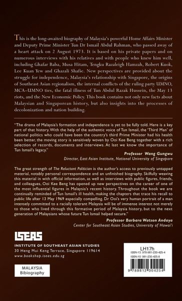 This is the long-awaited biography of Malaysia's powerful Home Affairs Minister and Deputy Prime Minister Tun Dr Ismail Abdul Rahman, who passed away of a heart attack on 2 August 1973. It is based on his private papers and on numerous interviews with his relatives and with people who knew him well, including Ghafar Baba, Musa Hitam, Tengku Razaleigh Hamzah, Robert Kuok, Lee Kuan Yew and Ghazalie Shafie. New perspectives are provided about the struggle for independence, Malaysia's relationship with Singapore, the origins of Southeast Asian regionalism, the internal conflicts of the ruling party UMNO, MCA-UMNO ties, the fatal illness of Tun Abdul Razak Hussein, the May 13 riots, and the New Economic Policy. This book contains not only new facts about Malaysian and Singaporean history, but also insights into the processes of decolonization and nation building.