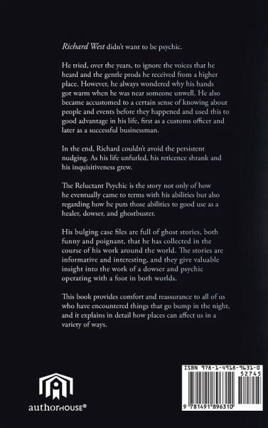 Richard West didn't want to be psychic. He tried, over the years, to ignore the voices that he heard and the gentle prods he received from a higher place. However, he always wondered why his hands got warm when he was near someone unwell. He also became accustomed to a certain sense of knowing about people and events before they happened and used this to good advantage in his life, first as a customs officer and later as a successful businessman. In the end, Richard couldn't avoid the persistent nudging. As his life unfurled, his reticence shrank and his inquisitiveness grew. The Reluctant Psychic is the story not only of how he eventually came to terms with his abilities but also regarding how he puts those abilities to good use as a healer, dowser, and ghostbuster. His bulging case files are full of ghost stories, both funny and poignant, that he has collected in the course of his work around the world. The stories are informative and interesting, and they give valuable insight into the work of a dowser and psychic operating with a foot in both worlds. This book provides comfort and reassurance to all of us who have encountered things that go bump in the night, and it explains in detail how places can affect us in a variety of ways.