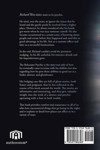 Richard West didn't want to be psychic. He tried, over the years, to ignore the voices that he heard and the gentle prods he received from a higher place. However, he always wondered why his hands got warm when he was near someone unwell. He also became accustomed to a certain sense of knowing about people and events before they happened and used this to good advantage in his life, first as a customs officer and later as a successful businessman. In the end, Richard couldn't avoid the persistent nudging. As his life unfurled, his reticence shrank and his inquisitiveness grew. The Reluctant Psychic is the story not only of how he eventually came to terms with his abilities but also regarding how he puts those abilities to good use as a healer, dowser, and ghostbuster. His bulging case files are full of ghost stories, both funny and poignant, that he has collected in the course of his work around the world. The stories are informative and interesting, and they give valuable insight into the work of a dowser and psychic operating with a foot in both worlds. This book provides comfort and reassurance to all of us who have encountered things that go bump in the night, and it explains in detail how places can affect us in a variety of ways.