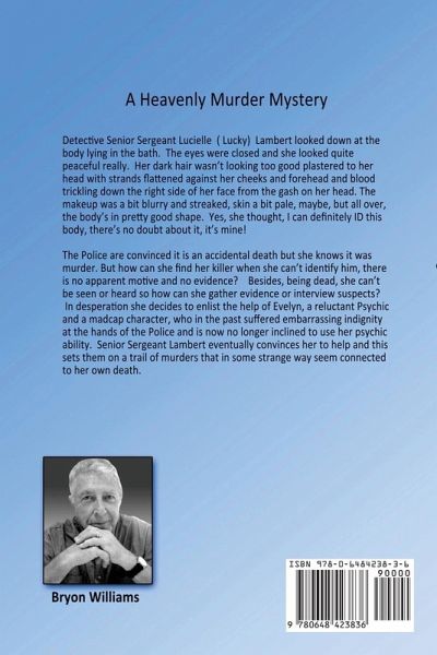 Detective Senior Sergeant Lucielle ( Lucky) Lambert looked down at the naked body lying in the bath. The eyes were closed, the dark hair was plastered to her head with strands flattened against her cheeks and forehead and blood had trickled down the right side of her face from the fatal gash on her head. The makeup was a bit blurry and streaked, but overall, the body was in pretty good shape. Yes, she thought, I can definitely ID this body, there's no doubt, it's mine. The police are convinced it is an accidental death but she knows it was murder. But how can she find her killer when she can't identify him, there's no apparent motive and no evidence? Besides, being dead, she can't be seen or heard so how can she gather evidence or interview suspects? In desperation she decides to enlist the help of Evelyn, a reluctant psychic and a madcap character, who in the past suffered embarrassing indignity at the hands of the Police and is now no longer inclined to use her psychic ability to solve crimes. Lucky eventually convinces her to help and this sets them on a trail of murders that in some strange way seem connected to her own death.