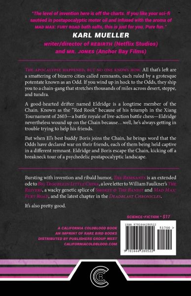 Peterson's weirdly fascinating environment will appeal to fans of epic world building, and the generous dose of ribaldry in the story is a welcome treat. -Booklist The apocalypse happened, but no one knows how. All that's left are a smattering of bizarro cities called remnants, each ruled by a grotesque potentate known as an Odd. If you wind up in hock to the Odds, they ship you to a chain-gang that stretches thousands of miles across desert, steppe, and tundra. A good-hearted drifter named Eldridge is a longtime member of the Chain. Known as the "Red Rook" because of his triumph in the Xiang Tournament of 2603-a battle royale of live-action battle chess-Eldridge nevertheless wound up on the Chain because...well, he's always getting in trouble trying to help his friends. But when El's best buddy Boris joins the Chain, he brings word that the Odds have declared war on their friends, each of them being held captive by a different Odd in a different remnant. Eldridge and Boris escape the Chain, kicking off a breakneck tour of a psychedelic post-apocalyptic landscape that includes a wild race along a subterranean river of mud; a visit to remnant that's like a massive ant colony; and a final showdown in a skyscraper-turned-temple that's toppled along a river of lava.