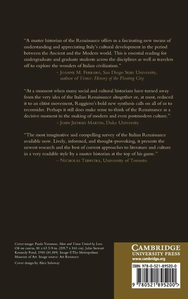 This book offers a rich and exciting new way of thinking about the Italian Renaissance as both a historical period and a historical movement. Guido Ruggiero's work is based on archival research and new insights of social and cultural history and literary criticism, with a special emphasis on everyday culture, gender, violence and sexuality. The book offers a vibrant and relevant critical study of a period too long burdened by anachronistic and outdated ways of thinking about the past. Familiar, yet alien; pre-modern, but suggestively post-modern; attractive and troubling, this book returns the Italian Renaissance to center stage in our past and in our historical analysis.