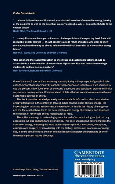 This book provides detailed yet easily understandable information about sustainable energy alternatives in the context of growing public concern about climate change, the impending fuel crisis and environmental degradation. It deals with the history of energy use and the factors that have led to the current interest in energy alternatives, and assesses the chance of renewable energy replacing fossil fuels in the future. The authors manage to make a highly complex and often intimidating subject not only accessible but also engaging and entertaining. This book unpacks but never simplifies the science of energy, leavening the more technical passages with anecdotes, metaphors, examples and imagery. By also dealing with the history, politics and economics of energy use, it offers both scientific and non-scientific readers a deeper understanding of the most important issue of our age.
