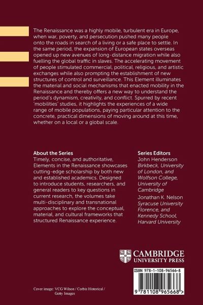 This Element examines the material and social mechanisms that enacted mobility in the Renaissance and offers a new way to understand the period's dynamism, creativity, and conflict. It highlights the experiences of a wide range of mobile populations, paying particular attention to the concrete, practical dimensions of moving around at this time.