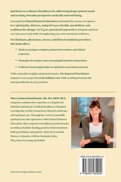 Mary Gannon Kaufmann, MS, MA, RDN, BCC, uniquely combines her expertise as a Registered Dietitian and Board-Certified Healthcare Chaplain to bridge the worlds of nutrition, lifestyle medicine, and spiritual care. Through her work in interfaith spiritual care and experience with Clinical Pastoral Education, Mary empowers healthcare professionals to embrace holistic healing practices that transform both practitioner and patient. Mary lives outside Denver, Colorado, with her husband, John.They have six young adult kids.