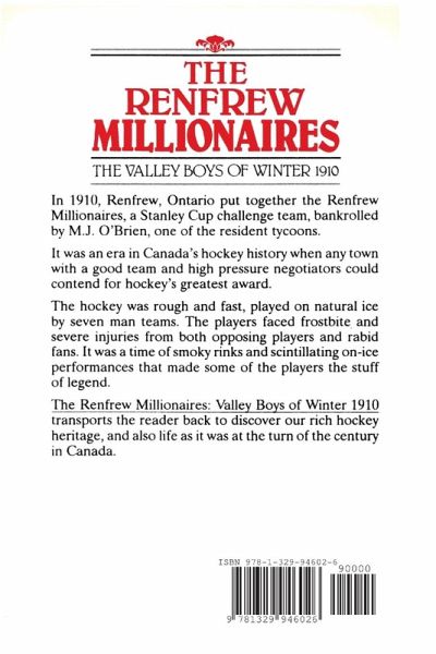 It was a time when small towns could still challenge for the Stanley Cup, the holy grail of Canadian hockey. The O'Briens of Renfrew, Ontario, father M.J. and son Ambrose, formed their own league, the National Hockey Association, owned four of the five teams and founded the Montreal Canadiens. Money appeared to be no object. Top players Lester and Frank Patrick, Fred "Cyclone" Taylor and "Newsy" Lalonde were paid large salaries with the objective of winning the Cup. The effort fell just short but the NHA continued and morphed into the NHL in 1917 but in 1910 Renfrew was the centre of the hockey universe. The team's name was the "Creamery Kings" but a newspaper christened them the Millionaires after the players were paid off in cash before leaving for their trip to New York in what was billed as a world championship tournament. The Millionaires won that and were declared "world champions"