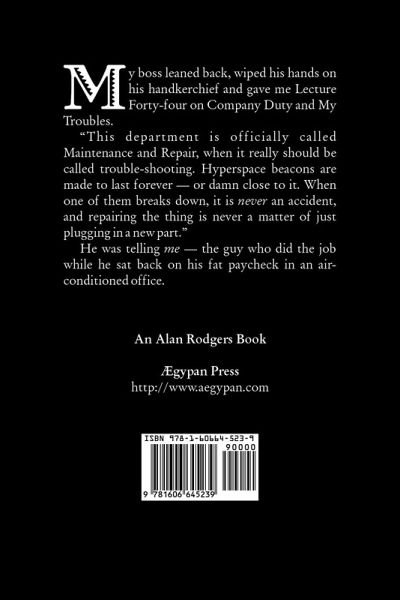 My boss leaned back, wiped his hands on his handkerchief and gave me Lecture Forty-four on Company Duty and My Troubles. "This department is officially called Maintenance and Repair, when it really should be called trouble-shooting. Hyperspace beacons are made to last forever -- or damn close to it. When one of them breaks down, it is never an accident and repairing the thing is never a matter of just plugging in a new part." He was telling me -- the guy who did the job while he sat back on his fat paycheck in an air-conditioned office.