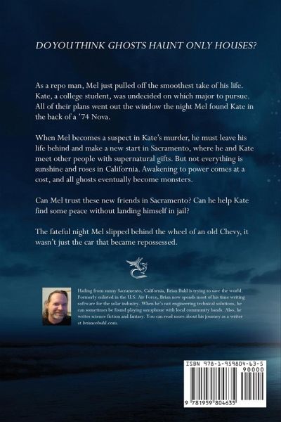Do you think ghosts haunt only houses? As a repo man, Mel just pulled off the smoothest take of his life. Kate, a college student, was undecided on which major to pursue. All of their plans went out the window the night Mel found Kate in the back of a '74 Nova. When Mel becomes a suspect in Kate's murder, he must leave his life behind and make a new start in Sacramento, where he and Kate meet other people with supernatural gifts. But not everything is sunshine and roses in California. Awakening to power comes at a cost, and all ghosts eventually become monsters. Can Mel trust these new friends in Sacramento? Can he help Kate find some peace without landing himself in jail? The fateful night Mel slipped behind the wheel of an old Chevy, it wasn't just the car that became repossessed.