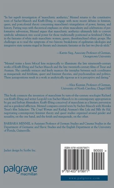 'Mennel trains a keen bifocal lens reciprocally to illuminate the late nineteenth-century works of Krafft-Ebing and Sacher-Masoch and the late twentieth-century films of Treut and Ataman. She carefully retraces and finely nuances the interplay between such coordinates as masquerade and fetishism, queer and feminist theories, and psychoanalysis and politics. These juxtapositions result in a work as analytically rigorous as it is perceptive and daring.' - Alice Kuzniar, Professor of German, University of North Carolina, Chapel Hill