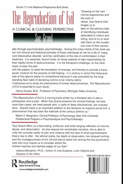 Why is it that victims of abuse so often become perpetrators, and what can psychoanalysis offer to these survivor-perpetrators, whose criminal conduct seems to transcend the possibilities of empathic psychoanalytic inquiry. In The Reproduction of Evil, Sue Grand engages these deeply troublesome issues in the belief that psychoanalysts can and should reclaim the study of what lies beyond ordinary human empathy. Her goal is to elucidate the link between traumatic memory and the perpetration of evil. To this end, she presents an interdisciplinary analysis, at once scholarly and passionate, of the ways in which families and cultures transform victims of malignant trauma into perpetrators of these very traumas on others. Through intensive case studies, Grand draws the reader into the world of the survivor-perpetrators who commit acts of child abuse, of incest, of racial persecution, even of homicide and genocide. By infusing psychoanalytic inquiry with cultural analysis and by supplementing clinical vignettes with well-chosen literary illustrations, Grand is able to convey the survivor-perpetrator's immediacy of experience in a manner that readers may find unsettling, even uncanny. By interweaving psychoanalytic, sociohistorical, and literary perspectives, Grand fills a critical lacuna in the literature about trauma and its intergenerational transmission. Her analysis of the psychodynamic processes and cultural tensions that bind perpetrators, victims, and bystanders provides trenchant insights into the violence and fragmentation that beset our society. Essential reading for a wide clinical audience, The Reproduction of Evil will also be powerfully informative for academic and lay readers interested in the intrapsychic, interpersonal, and cultural factors that account for the perpetuation of evil from generation to generation.
