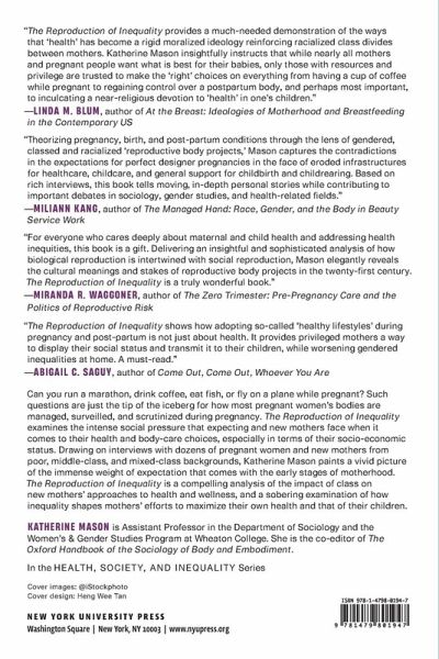 "The Reproduction of Inequality examines women's work on their bodies during pregnancy and postpartum; while mothers typically focus on the health benefits of their choices about breastfeeding or prenatal diet and exercise, these practices also display and perpetuate status inequalities from one generation to the next"--