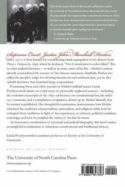 Supreme Court Justice John Marshall Harlan (1833-1911) is best known for condemning racial segregation in his dissent from Plessy v. Ferguson in 1896, when he declared, "Our Constitution is color-blind." But in other judicial decisions--as well as in some areas of his life--Harlan's actions directly contradicted the essence of his famous statement. Similarly, Harlan was called the people's judge for favoring income tax and antitrust laws, yet he also upheld doctrines that benefited large corporations. Examining these and other puzzles in Harlan's judicial career, Linda Przybyszewski draws on a rich array of previously neglected sources--including the verbatim transcripts of his 1897-98 lectures on constitutional law, his wife's 1915 memoirs, and a compilation of opinions, drawn up by Harlan himself, that he wanted republished. Her thoughtful examination demonstrates how Harlan inherited the traditions of paternalism, nationalism, and religious faith; how he reshaped these traditions in light of his experiences as a lawyer, political candidate, and judge; and how he justified the vision of the law he wrote. An innovative combination of personal and judicial biography, this book makes an insightful contribution to American constitutional and intellectual history.
