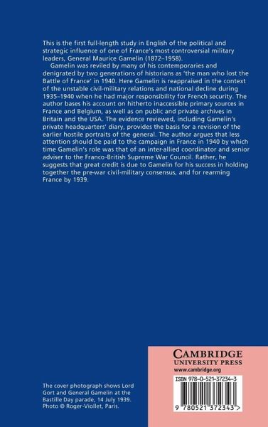 This is the first full-length study in English of the career of one of France's most controversial military leaders, General Maurice Gamelin (1872-1958). Gamelin was reviled by many of his contemporaries and denigrated by historians as 'the man who lost the Battle of France'. Here Gamelin is re-appraised in the context of the unstable civil-military relations and national decline of the years 1933-40. Basing his account on hitherto inaccessible primary sources and on public and private archives. The evidence reviewed, including Gamelin's private headquarters' diary, provides the basis for a revision of the earlier hostile portraits of the general. The author argues that less attention should be paid to the campaign in France in 1940, by which time Gamelin's role was that of co-ordinator and adviser. Rather, he suggests that great credit is due to Gamelin for his success in holding together the pre-war civil-military consensus, and for re-arming France by 1939.