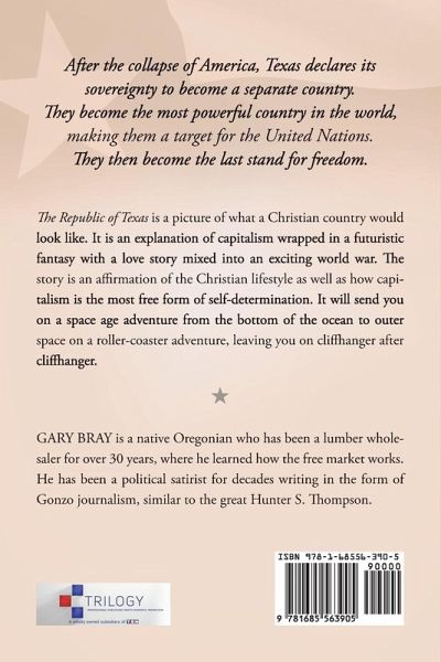 After the collapse of America, Texas declares its sovereignty to become a separate country. They become the most powerful country in the world, making them a target for the United Nations. They then become the last stand for freedom. The Republic of Texas is a picture of what a Christian country would look like. It is an explanation of capitalism wrapped in a futuristic fantasy with a love story mixed into an exciting world war. The story is an affirmation of the Christian lifestyle as well as how capitalism is the most free form of self-determination. It will send you on a space age adventure from the bottom of the ocean to outer space on a roller-coaster adventure, leaving you on cliffhanger after cliffhanger.