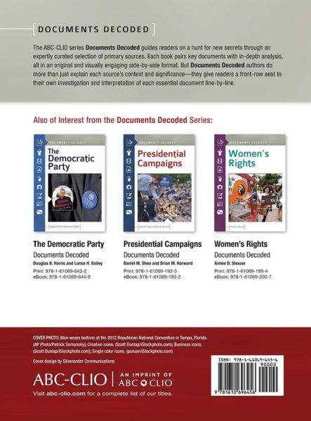 Will the modern Republican Party be able to convince the American people that its policies and positions are the right ones to guide the United States? This book examines the status of the Republican Party in the early 21st century, considers where it came from, and predicts where it's heading. An ideal research tool for advanced high school students in government and history classes as well as undergraduate students enrolled in political science and history courses, The Republican Party: Documents Decoded presents documents, transcripts of speeches, photographs, political cartoons, and campaign materials to define the status of the Republican Party in the early 21st century. Focusing on its leaders, key principles, organization, and the basis of its political support, the book provides readers with the knowledge and understanding to answer the key questions: For what does the party actually stand? What must Republicans do to move past recent negative perceptions of their party? And can it reclaim the White House in 2016? The source documents and commentary by expert scholars will help students and readers to analyze and evaluate the content themselves in order to reach their own conclusions of where today's Republican party stands on the key issues, such as health care reform, relations between church and state, foreign policy, education, reproductive rights, gun control, and immigration.