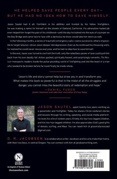 Jason Sautel spent much of his early adulthood as a decorated firefighter in one of the toughest firehouses in the country and today shares Christ-centered stories and lessons from his time there to his 600,000+ Facebook followers. He loves his wife of sixteen years, Kristie, his four two-legged children, his two four-legged children, and appreciates God's gifts of donuts, surfing, and Maui.
