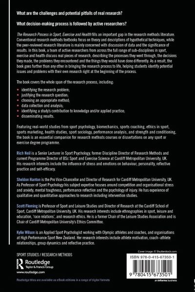 Rich Neil is a Senior Lecturer in Sport Psychology, former Discipline Director of Research Methods and current Programme Director of BSc Sport and Exercise Science at Cardiff Metropolitan University, UK. His research interests include the influence of stress and emotions on behaviour, personality, reflective practice and self-efficacy. Sheldon Hanton is the Pro Vice-Chancellor and Director of Research for Cardiff Metropolitan University, UK. As Professor of Sport Psychology his subject expertise focuses around competition and organisational stress and anxiety, mental toughness, performance reflection and the psychology of injury. He has experience of qualitative and quantitative approaches to research, including intervention studies. Scott Fleming is Professor of Sport and Leisure Studies and Director of Research at the Cardiff School of Sport, Cardiff Metropolitan University, UK. His research interests include ethnographies in sport, leisure and education, 'race relations', and research ethics. He is a former Chair of the Leisure Studies Association and is Chair of Cardiff Metropolitan University's Ethics Committee. Kylie Wilson is an Applied Sport Psychologist working with Olympic athletes and coaches, and organisations at High Performance Sport New Zealand. Her research interests include athlete motivation, coach-athlete relationships, group dynamics and reflective practice.