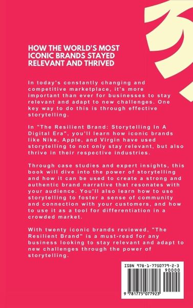 In today's constantly changing and competitive marketplace, it's more important than ever for businesses to stay relevant and adapt to new challenges. One key way to do this is through effective storytelling. In "The Resilient Brand: Storytelling In A Digital Era", you'll learn how iconic brands like Nike, Apple, and Virgin have used storytelling to not only stay relevant but also thrive in their respective industries. Through case studies and expert insights, this book will dive into the power of storytelling and how it can be used to create a strong and authentic brand narrative that resonates with your audience. You'll also learn how to use storytelling to foster a sense of community and connection with your customers, and how to use it as a tool for differentiation in a crowded market. With twenty iconic brands reviewed, "The Resilient Brand" is a must-read for any business looking to stay relevant and adapt to new challenges through the power of storytelling.
