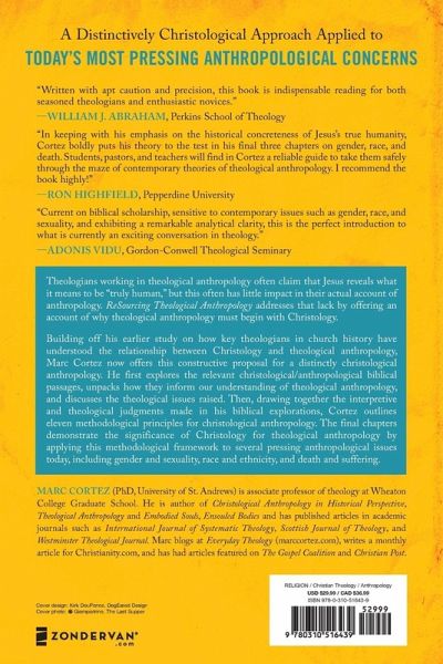 Theologians working in theological anthropology often claim that Jesus reveals what it means to be "truly human," but this often has little impact in their actual account of anthropology. ReSourcing Theological Anthropology addresses that lack by offering an account of why theological anthropology must begin with Christology. Building off his earlier study on how key theologians in church history have understood the relationship between Christology and theological anthropology, Cortez now develops a new proposal for theological anthropology and applies it to the theological situation today. ReSourcing Theological Anthropology is divided into four sections. The first section explores the relevant Christological/anthropological biblical passages and unpacks how they inform our understanding of theological anthropology. The second section discusses the theological issues raised in the course of surveying the biblical texts. The third section lays out a methodological framework for how to construct a uniquely Christological anthropology. The final section builds on the first three sections and demonstrates the significance of Christology for understanding theological anthropology by applying the methodological framework to several pressing anthropological issues: gender and sexuality, race and ethnicity, and death and suffering.