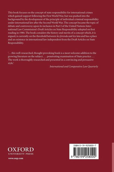 This book focuses on the concept of state responsibility for international crimes, which gained support following the First World War, but was pushed into the background by the development of the principle of individual criminal responsibility under international law after the Second World War. Jorgensen considers the history and merits of a concept that, it is argued, is currently on the threshold between lex ferenda and lex lata.