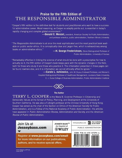 Praise for the Fifth Edition of The Responsible Administrator "Cooper's fifth edition is the definitive text for students and practitioners who want to have a successful administrative career. Moral reasoning, as Cooper so adeptly points out, is essential in today's rapidly changing and complex global environment."-Donald C. Menzel, president, American Society for Public Administration, and professor emeritus, public administration, Northern Illinois University "The Responsible Administrator is at once the most sophisticated and the most practical book available on public sector ethics. It is conceptually clear and jargon-free, which is extraordinary among books on administrative ethics."-H. George Frederickson, Stone Distinguished Professor of Public Administration, University of Kansas "Remarkably effective in linking the science of what should be done with a prescriptive for how to actually do it, the fifth edition of Cooper's book keeps pace with the dynamic changes in the field, both for those who study it and those who practice it. The information presented in these pages can be found nowhere else, and it is information we cannot ethically afford to ignore."-Carole L. Jurkiewicz, John W. Dupuy Endowed Professor, and Woman's Hospital Distinguished Professor of Healthcare Management, Louisiana State University, E. J. Ourso College of Business Administration, Public Administration Institute
