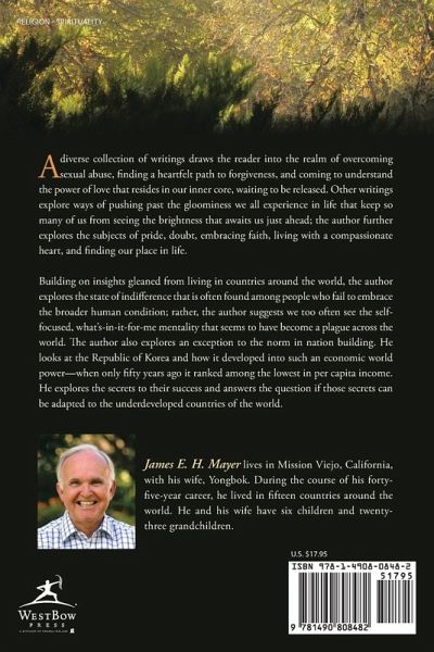 A diverse collection of writings draws the reader into the realm of overcoming sexual abuse, finding a heartfelt path to forgiveness, and coming to understand the power of love that resides in our inner core, waiting to be released. Other writings explore ways of pushing past the gloominess we all experience in life that keep so many of us from seeing the brightness that awaits us just ahead; the author further explores the subjects of pride, doubt, embracing faith, living with a compassionate heart, and finding our place in life. Building on insights gleaned from living in countries around the world, the author explores the state of indifference that is often found among people who fail to embrace the broader human condition; rather, the author suggests we too often see the self-focused, what's-in-it-for-me mentality that seems to have become a plague across the world. The author also explores an exception to the norm in nation building. He looks at the Republic of Korea and how it developed into such an economic world power-when only fifty years ago it ranked among the lowest in per capita income. He explores the secrets to their success and answers the question if those secrets can be adapted to the underdeveloped countries of the world.