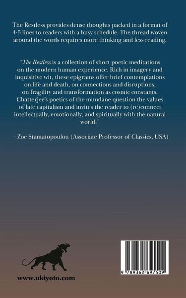 The Restless provides dense thoughts packed in a format of 4-5 lines to readers with a busy schedule. The thread woven around the words requires more thinking and less reading.