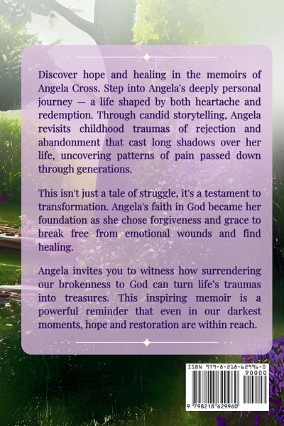 Discover hope and healing in the memoirs of Angela Cross. Step into Angela's deeply personal journey - a life shaped by both heartache and redemption. Through candid storytelling, Angela revisits childhood traumas of rejection and abandonment that cast long shadows over her life, uncovering patterns of pain passed down through generations. This isn't just a tale of struggle, it's a testament to transformation. Angela's faith in God became her foundation as she chose forgiveness and grace to break free from emotional wounds and find healing. Angela invites you to witness how surrendering our brokenness to God can turn life's traumas into treasures. This inspiring memoir is a powerful reminder that even in our darkest moments, hope and restoration are within reach.