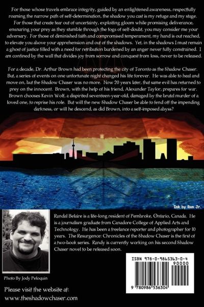 For a decade, Dr. Arthur Brown had been protecting the city of Toronto as the Shadow Chaser. But, a series of events on one unfortunate night changed his life forever. He was able to heal and move on, but the Shadow Chaser was no more. Now 20 years later, that same evil has returned to prey on the innocent. Brown, with the help of his friend, Alexander Taylor, prepares for war. Brown chooses Kevin Wolf, a dispirited seventeen-year-old, damaged by the brutal murder of a loved one, to reprise his role. But will the new Shadow Chaser be able to fend off the impending darkness, or will he descend, as did Brown, into a self-imposed abyss?