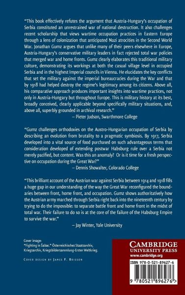 This book examines the Habsburg Army's occupation of Serbia from 1914 through 1918. This occupation ran along a distinctly European-centered trajectory radically different from other great power colonial projects or occupations during the 20th century. Unlike these projects and occupations, the Habsburg Army sought to denationalize and depoliticize Serbia, to gradually reduce the occupation's violence, and to fully integrate the country into the Empire. These aims stemmed from 19th-century conservative and monarchical convictions that compelled the Army to operate under broad legal and civilizational constraints. Gumz's research provides a counterpoint to interpretations of the First World War that emphasize the centrality of racially inflected, Darwinist worldviews in the war.