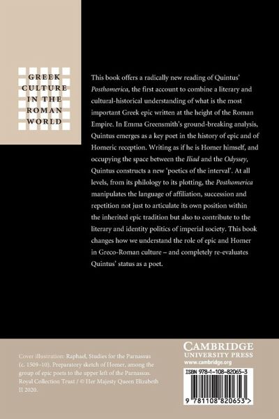 The first literary and cultural reading of Quintus Smyrnaeus' Posthomerica, a major Greek epic from the height of the Roman Empire which tells the story 'in between' Homer's Iliad and Odyssey, and reveals the aesthetic and identity politics of the era. Important for understanding Homer and epic in Greco-Roman culture.